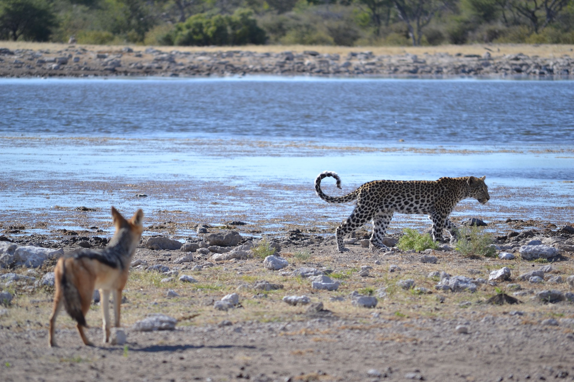 Leopard by itself. Note the solitary animal on the left too.